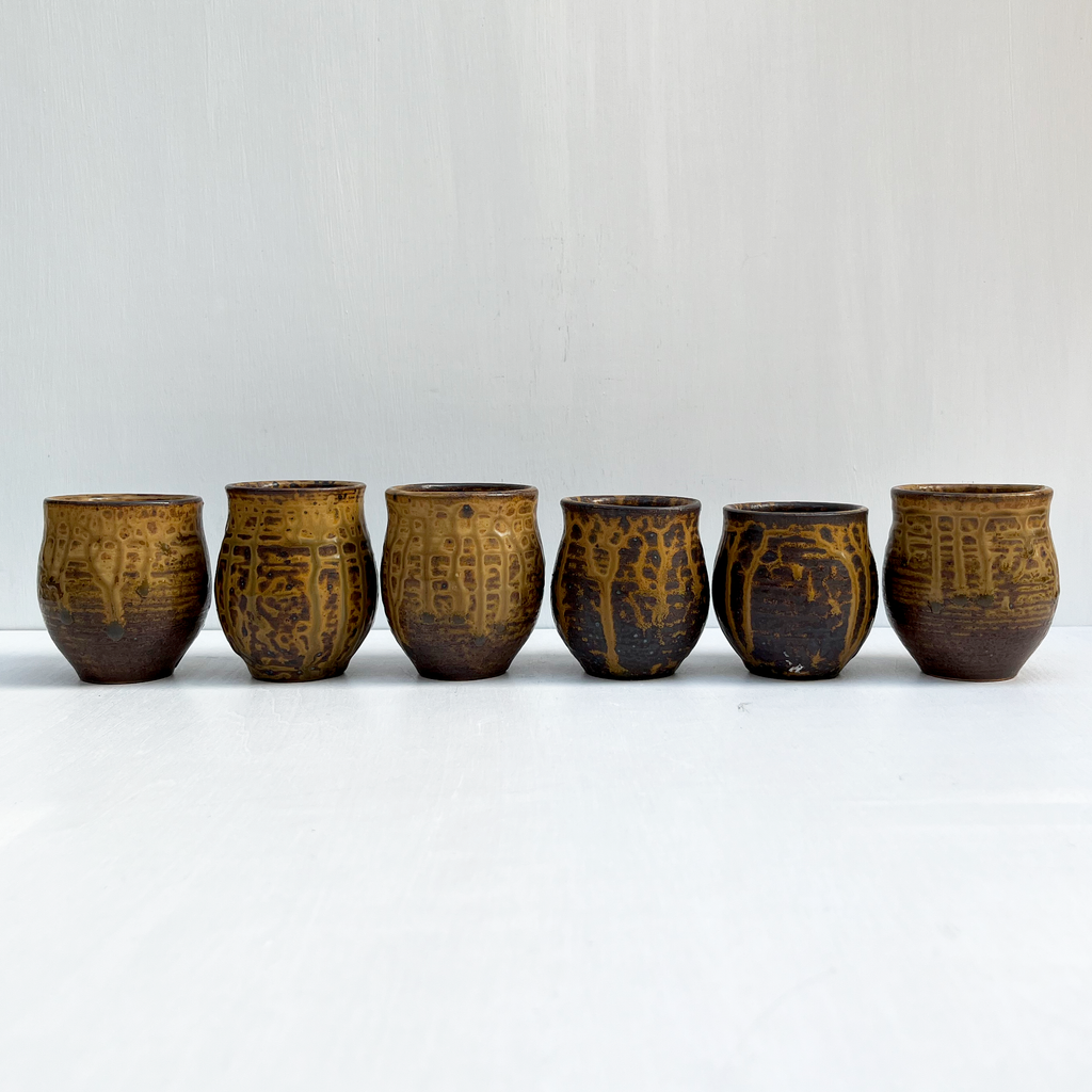 Brown Teacups, Small, Set of 6