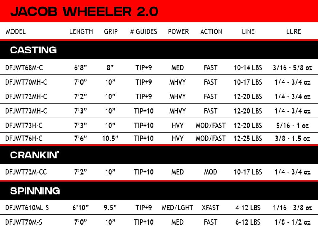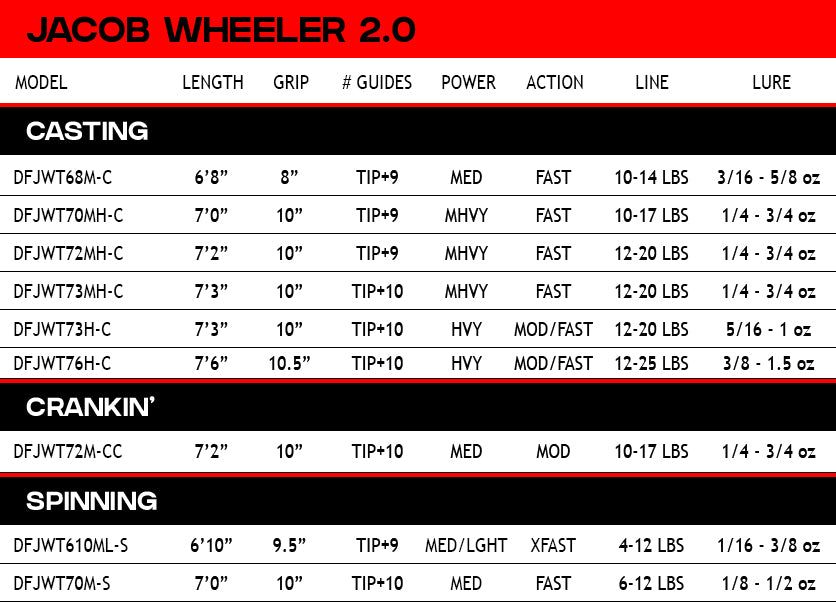 Designed by the champion himself, the Jacob Wheeler 2.0 series takes rod innovation to the next level. With technique-specific designs and top-tier performance features, these rods are built to help you fish like a pro. Power, precision, and proven success—all in your hands.