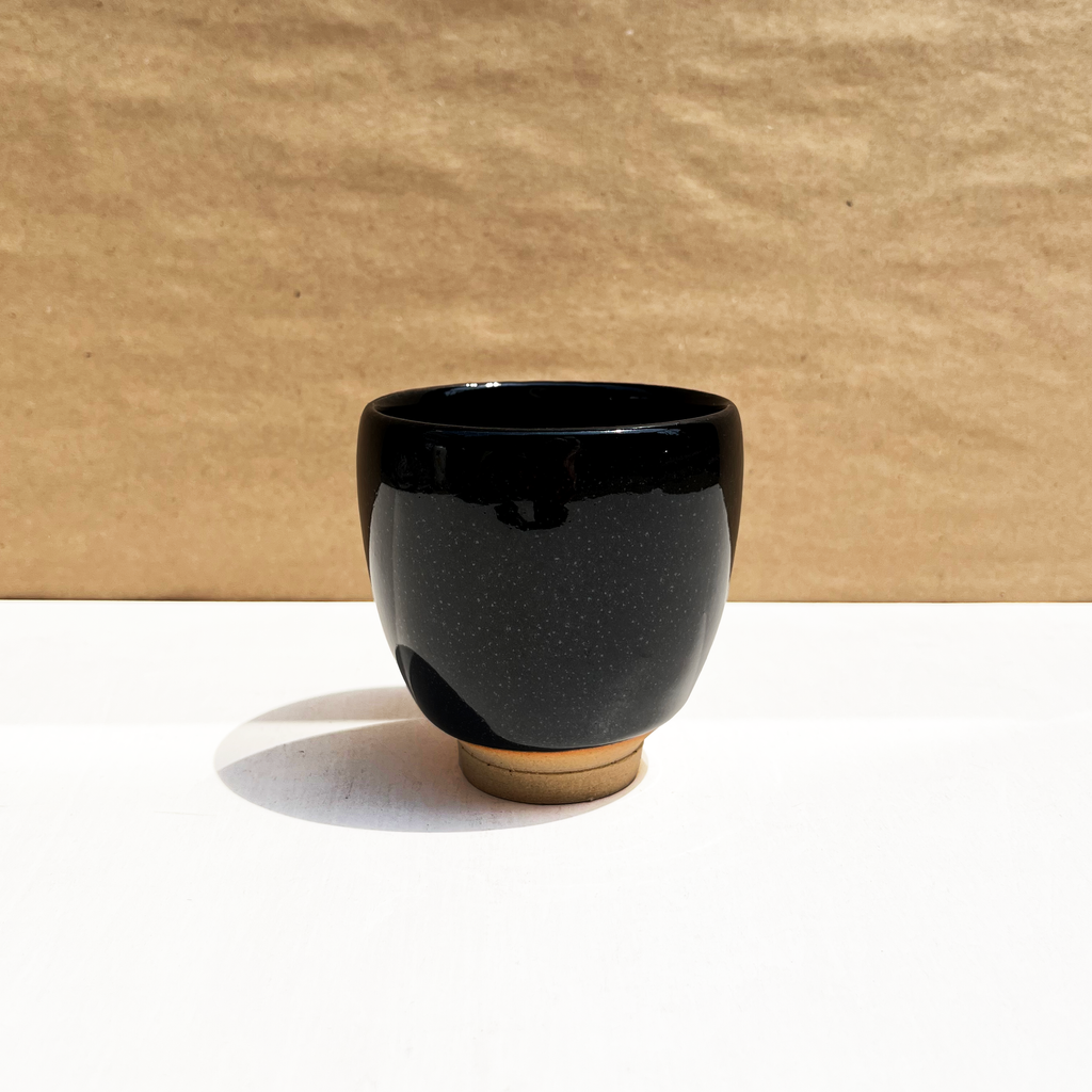 Beautiful footed teacup in a dark brown/black glaze. Circa 1970s.